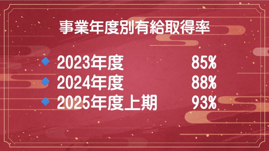 事業年度を追うごとに有給休暇の取得率が上がってきていることが伺えます。
